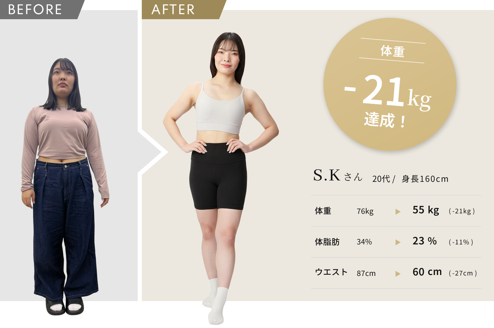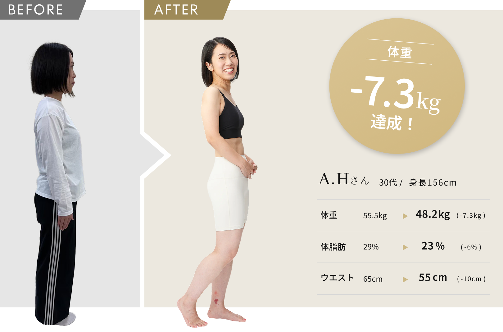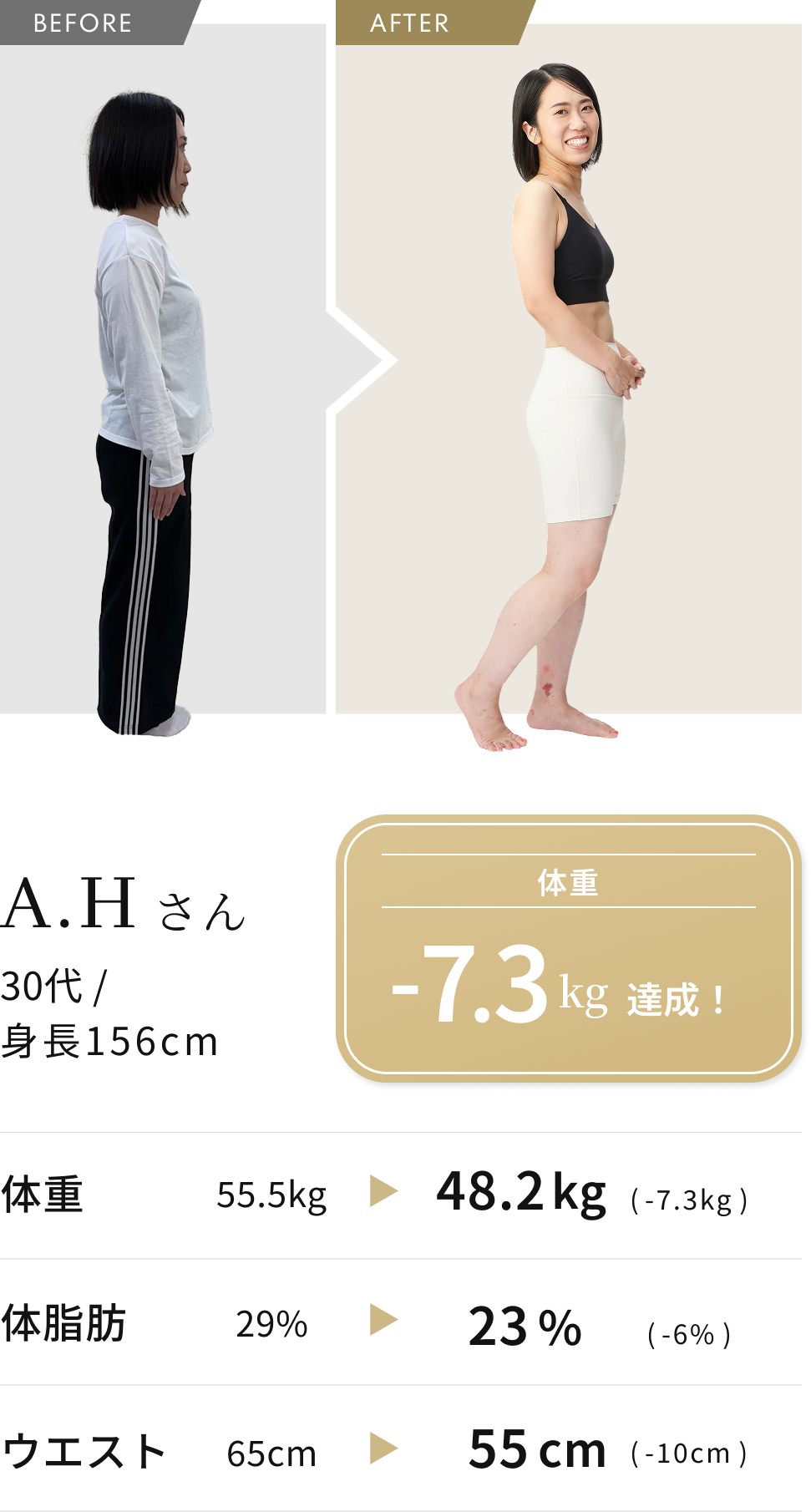 2年前に出産してから中々体型が戻らず悩んでいました。家族での写真撮影や鏡を見たときに変わりたい!と強く思い入会を決意しました。